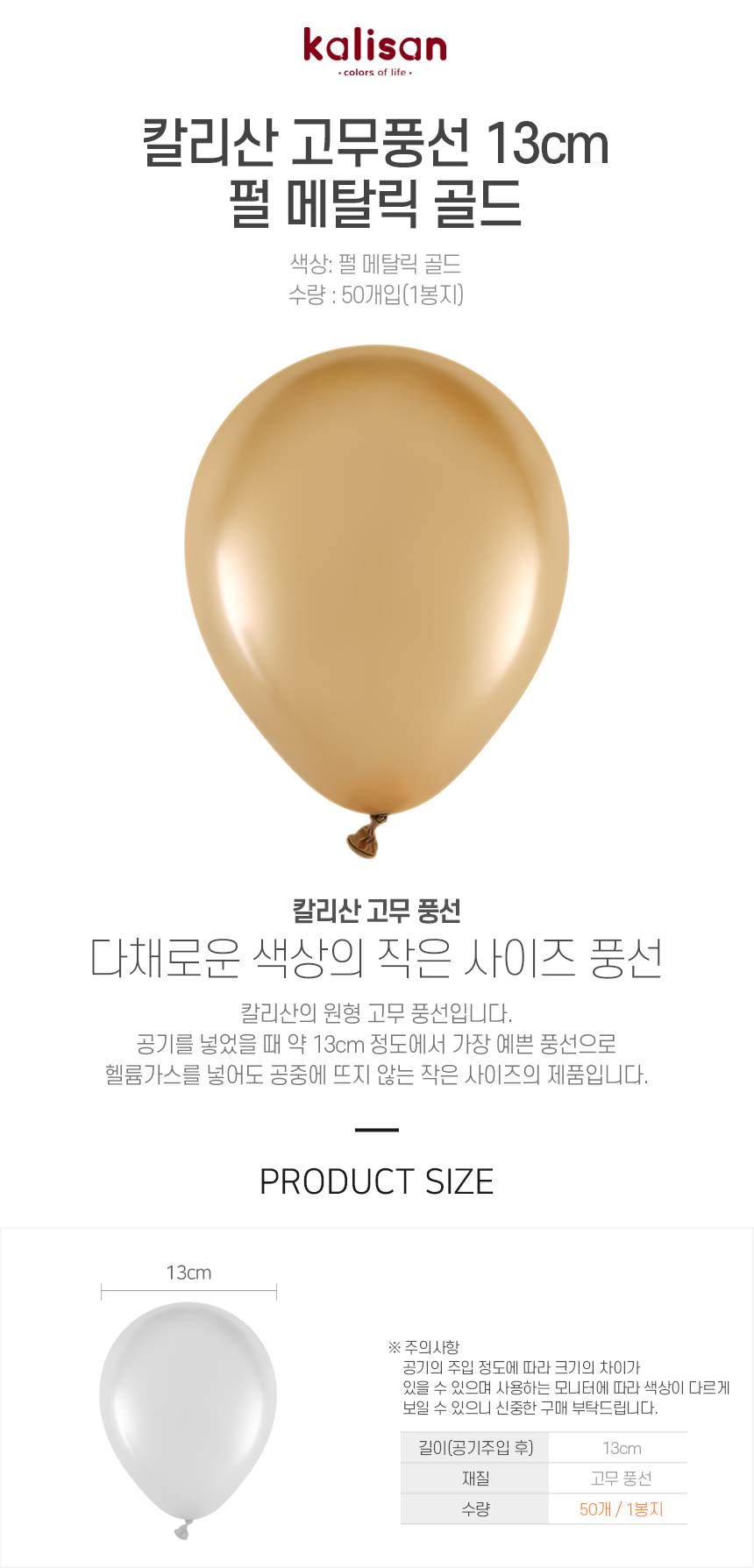 칼리산 고무풍선 13cm 펄 메탈릭 골드 50개입