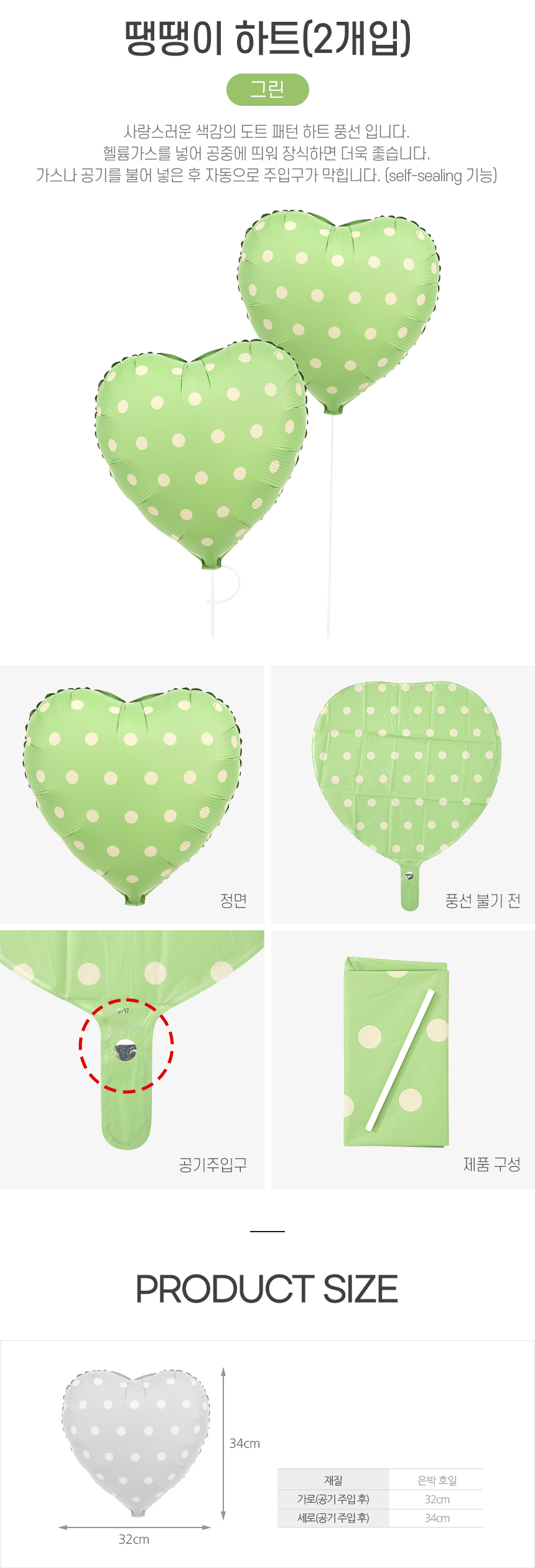 품명 및 모델명 45땡땡이하트(18)그린2입