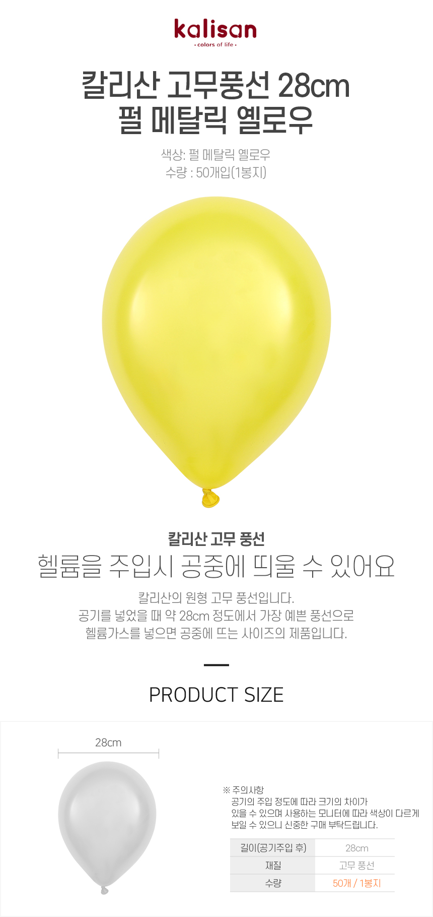 칼리산 고무풍선 28cm 펄 메탈릭 옐로우 50개입