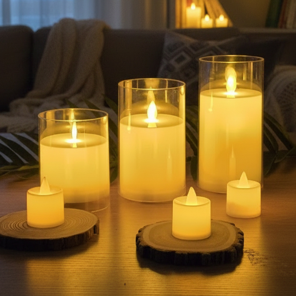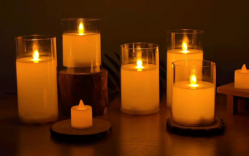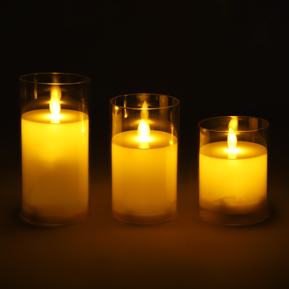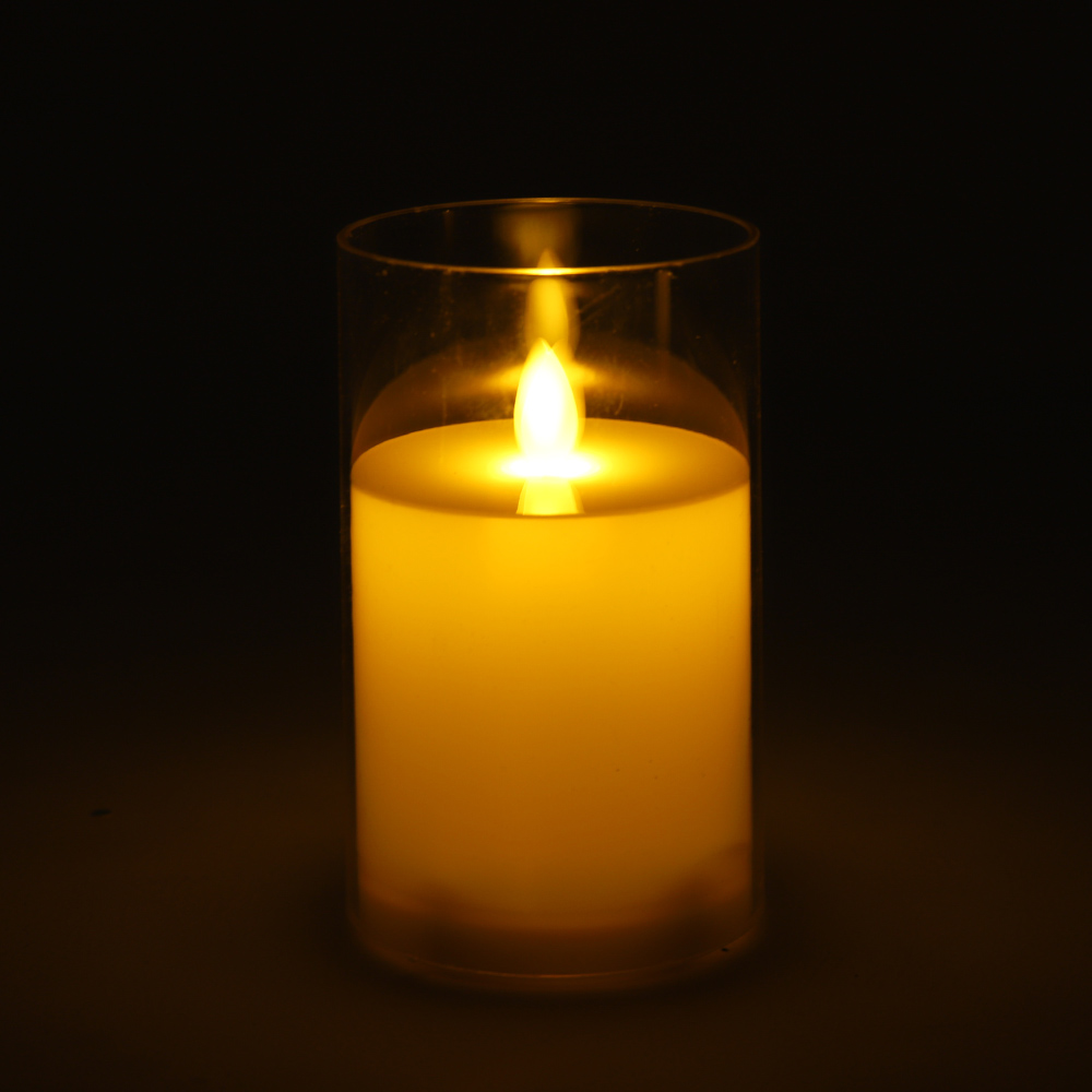 LED초 글라스 캔들 투명 12.5cm 건전지 전자 양초 흔들리는 촛불