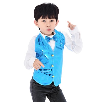 반짝이조끼 아동 라이트블루 스팡클 웨이터 파티의상
