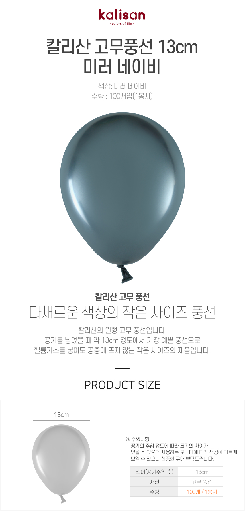 칼리산 고무풍선 13cm 미러 네이비 100개입
