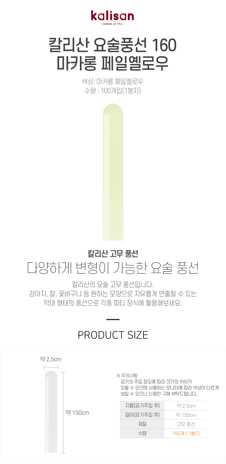 칼리산 요술풍선 160 마카롱 페일옐로우 100개입